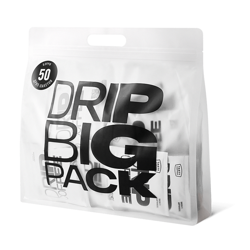 DRIP BIG PACK — это большая упаковка с дрипами, которых хватит, во-первых, надолго, а во-вторых, на несколько человек! Теперь можно не заказывать новую пачку каждую неделю, а запастись одной и делиться дрипами с друзьями и близкими, потому что внутри упаковки сразу 50 дрип-пакетов.